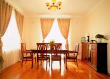 收楼以后,宁先生再没有对房子进行结构改造,他认为任何改动都会影响房屋本身的强度。唯一的调整是楼梯,原本的楼梯跨度短,步幅在23厘米左右,不太适合老人上下,于是延长楼梯,将其改作16厘米,并把水泥扶手换成了铁艺的。延伸后的楼梯正对二楼衣帽间,虚虚实实的磨砂门让人不知就里,内里由三角位腾出来空间颇为宽敞,正好符合现代居家要求。 宁家的客厅连餐厅,看起来要比实际面积30平方米大得多,宁先生选择了稳重作为主调,壁画、熏黄色 吊灯 、铜制雕塑、白色羊毛垫,莫不为此。他甚至在装修的最后安上了一个壁炉,虽说不能真的烧火,但取暖的红灯一亮,屋里却真地笼罩着些温暖的感觉。