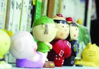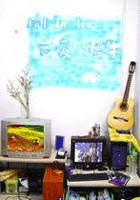 ●摆设创意五 墙面彩喷体现主人个性 虽然房间小,但也不能忽略墙壁的装饰。阿簿家的墙面是他最得意的创作之一。放电视的一面墙上用颜料彩喷的一幅“恋爱的犀牛”,完全出自个人之手。此外,墙壁上还有顺序地贴着电影小海报、老照片、剪报,做法简单,但很抢眼。 贴士:小房间要摆设出主人的个性,墙壁是个不容错过的地方。