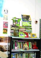 ●摆设创意三 带轮家具利于变格局 随着家具、家居用品的增多,小户型房间需要经常改变格局,因此,选择可移动的储物功能家具是很有必要的。阿簿是个有点爱书成狂的人,书本是储物的重点,因此,一张九格带轮大书架就帮了大忙,可以靠墙而栖,也可以随时变成一个空间区隔物。 贴士:由于书架有足够的纵深,在将书放进书格里后,其实还留有不少空间,所以书架里还可以摆放手机、相机、手表、杯子等许多零碎的小东西,具有收纳作用。