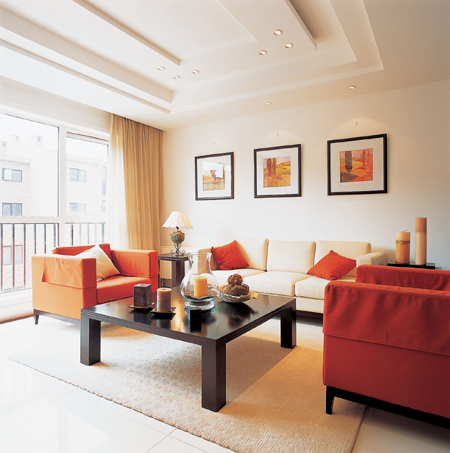 因地制宜,布局更合理 由于楼上的房间是斜屋顶,设计者在房间布局上充分利用了这一户型特色。南向的主卧室高大宽敞,有充足的光线照射进来,设计者最大限度地保留了这些优势,同时在家具选择上也巧费心思:宽大舒适的家具和简约凝练的装修风格营造出一个舒适安逸的休息空间;浅棕色的床罩与橘黄色的 沙发 、咖啡色系的家具形成完美的搭配,这是一个绝对独特、大气的房间。 |
