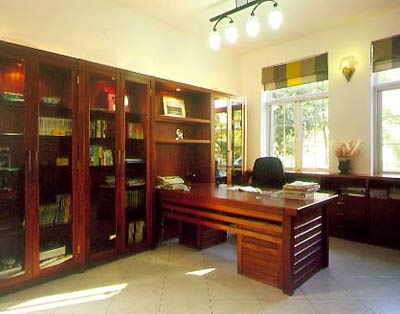 书房在现代家居生活中担任着越来越重要的角色,它不但是休闲、读书的场所,也是工作的空间。就像车是很多人挚爱的“情人”一样,书房对于一些人来说,比喻成“红袖”一点也不为过。 书房里家具的选购和摆放都有很大的学问。书房经常承担着书写、电脑操作、藏书和休息的功能, 写字台内应该有存放文件和小物品的地方。最方便的是在写字台两侧有可拉出的托架,这种托架可用时拉出,用毕推回。还有一种写字台也很方便,它的两侧有挂斗,挂斗内可以竖着放硬纸板做的文件夹。 写字台桌面的光线很重要。光线应足够,并且尽量均匀。桌面上的明度与周围明度不要形成强烈对比,最好采用可根据需要改变光线方向和 光源 距离的灯具。写字台的高度要适中,要留有腿在桌下活动的足够区域。 而座椅应与写字台配套,高低适中,柔软舒适,最好能购买转椅,以方便人的活动需求。根据人体工程学设计的转椅有效承托背部曲线,应为首选。 选择书柜时首先要保证有较大的贮藏书籍的空间。书柜间的深度宜以30厘米为好,过大的深度浪费材料和空间,又给取书带来诸多不便。书柜的搁架和分隔最好是可以任意调节的,根据书本的大小,按需要加以调整。 书架的种类很多。非固定式的书架只要是拿书方便的场所都可以旋转。入墙式或吊柜式书架,对于空间的利用较好。半身的书架靠墙放置时,空出的上半部分墙壁可以配合壁画等饰品一起布置。落地式的大书架有时可兼作间壁墙使用。这类书架放一些大型的工具书,看起来比较美观。一些珍贵的书籍最好放在有柜门的书柜内,以防书籍日久沾满尘埃。 在现代家庭中,经常出现两个人同时在家办公和读书,那么可以在沿窗子的墙面做个宽50厘米、2米多长的条形写字台,这样就可以同时满足两个人的需要了。 |