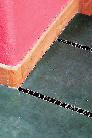 水泥地面有各种处理方法,但多数是保留水泥的本色来强调它的质感。主人在铺水泥地面时,在水泥里和入了一定比例的矿物颜料来实现自己对色彩的追求,出来的效果证明,有色彩的水泥地面并不影响它质感的表现,相反,与主人最初为了防裂而镶嵌上的一排排黑色马赛克相衬,墨绿色的水泥地面质感更加凸显。