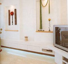 都觉得一大面白墙空空的,于是越添越多。这里的墙处理的即美观,又不累赘。