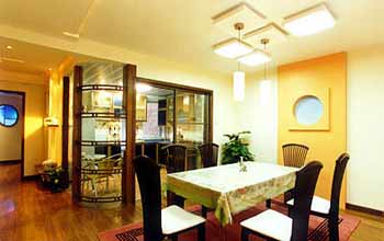 这套房子的主人是从事IT产业的夫妇二人。含蓄、高雅、朴实,讲究品质,显示品位,是居室主人寄予设计的希望。设计师根据业主的要求,把空间的原有结构进行了调整,在 由于业主对中华民族古老的禅学文化情有独钟,于是,设计师充分凸现 线条 与层次的细节美感,再现空灵、静谧的空间。在墙面和顶面运用几何学的设计理念,纯白色的几何形、多元化的电视墙、神秘而古老的符号装饰、彩色的鹅卵石与 地灯 的和谐搭配,再加上自然光产生的光与影,尽显现代、清简、时尚的空间魅力。 同时,设计师拆除了厨房原有的封闭而不实用的轻体墙,采用柚木与落地钢化玻璃将之通透;将走廊尽头正对的儿童卧室改到侧面,在此做了一个走廊与儿童床头公用的双背景墙;把主卫生间与主卧室更衣柜之间的墙打通,使主卫生间面积倍增,并设立矮墙分割空间,增加了空间的私密性。 整体规划上,本案大量的采用深色柚木,在色系上整齐划一,内嵌式的灯具设计也使得天花板的 线条 简单而不繁复,符合主人简洁、现代的个性。墙面的“留白”让居住其间的主人能随着自己的喜好、品位和心情,摆放一些展示情感与生命力的饰品,使人真正感到拥有了一个属于自己的“家”。 客厅:“H”型的吊顶将客厅的功能自然而清晰地勾勒,电视背景墙采用多元化的材质和表现手法,富有理性和层次感。极大地契合了主人现代、简约的理想。 ![]() 儿童房一角:针对儿童房面积的局限性,设计师将墙面设计成海蓝色主调,满足了小主人海阔天空的幻想。一弯明月、闪闪小星、卡通玩具的点缀,衬托出小主人的活泼性格,构成了一片斑斓的童话世界。 ![]() 过道:设计师将走廊尽头正对的儿童卧室改到侧面,在此做了一个走廊与儿童床头公用的双背景墙。对此设计的最初灵感来源于“床前明月光”,一边是儿童床头的“举头望明月”,一边是古老的中式窗棂,朦胧之中,浮现一个下弦月,使人感受不同的光影变化。 ![]() 厨房与餐厅:拆掉厨房原有的墙,采用柚木柱与钢化玻璃使之通透,并将门的位置改到餐厅的一侧,通过一段弧形的玻璃过渡,与左侧走廊的弧形墙遥相呼应。顶部6组不规则分布的规则方块,从走廊的顶延伸、分离出来,整个房间和谐开放。 ![]() 门厅:正门入口处柚木衣帽柜和弧形画廊相对称,由不锈钢扶手、衣帽隔、座蹬台组成,掩饰了电表箱,既实用又美观。另一侧是黄金分割的两部分,上部是凸起,下部凹进。由于男主人喜好禅境的悠远,设计师在居室的顶部做了一些古老而难以破解的符号,把对面墙处理得极为简洁,充分营造了禅的意境。 ![]() 卧室:为了迎合女主人崇尚温馨的个性,橘黄色便成居室的整体色。背景墙起了一个厚度,里面装灯,把床头嵌到里面,素雅的色彩,柔和的照明,尽情挥洒着灵动的都市时尚。 |