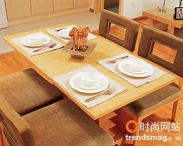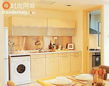 西厨部分用浅色直线式的橱柜,色彩和款式都和室内整个色调配搭和谐。顶柜和地柜间的墙上用不锈钢拉丝板装饰,不仅提亮整个空间,而且清洁的时候可以省不少力气。冰箱、洗衣机都是量身“定制”的,没有为了功能强大而牺牲空间的整体性,而是寻找尺寸恰倒好处的款式。另外,设计师还在外面的阳台上专门设立了煎炒烹炸用的中厨, 推拉门 一关,既能享受中餐的美味,又少了被烟熏的苦楚。
