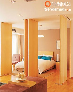 最出彩的要算起居区和睡眠区的 隔断 了。五扇可以旋转、平推,顶天立地的枫木色隔扇门立在室内, 隔断 本身的细长高挑缓解了屋子层高的不足。灵活的方式又让主人可以随意地规划自己的空间,独自在家时敞开 隔断 ,阳光从南面的几个大窗中照进室内,整个房间充满明媚的感觉。坐在起居区里环顾一下,屋里层层景致各不相同。来了不太熟识的朋友就把 隔断 封起,浅色的“木墙”没有压抑感,亲近也变得简单起来。主人的私密空间也被包裹得严严实实,不会泄露半点。