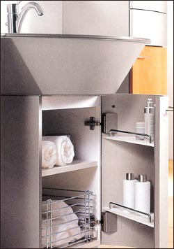 一般说来,年轻的单身男性由于个性和经济原因,多栖居于小户型之中。浴室的面积不会很大,不同的户型也不尽相同。最适合他们的实际情况、并为他们所青睐的浴室家具,当然要既能合理利用空间,又具实用性。 充分利用洗面盆下部空间 贴切利用墙角空间 阳刚实用的弧形浴室柜 充分利用立体空间