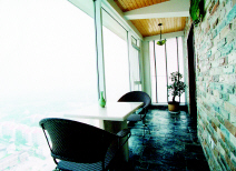 开敞式的阳台以木地板铺地,配上 沙发 式的秋千架,在顶棚悬挂的植物与壁挂的老式灯饰的映照下,所营造出的浪漫情怀和休闲气息已远非笔墨所能形容。