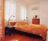 位于3楼主卧里的一套北欧风情卧房组家具,是屋里唯一一套非定做的现成购买的新家具。成套卧房家具最易用得呆板,而女主人匠心独运,先以两个中式的红木方凳作为床头柜打破沉闷,再以一道采用中式屏风图案的和式拉门,巧妙地将卧房同书房 隔断 。一条以印度丝织物拼缀而成的床罩,在午后阳光映射下变幻出神秘妖娆的东方色彩,更是活跃了整个的卧室空间。