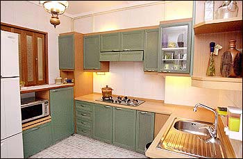 ![]() 单位的厨房不大,左边的折门可随时打开,使室内空气更流通。