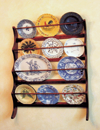 法式乡村 记得我们说过法式家居中,很典型的是收藏有大量的瓷器。在法国人的眼中,瓷器不仅是盛器,更多时候是装饰,甚至仅为收藏而收藏。作一个仿旧的木架,把家中累积的青色细瓷盘放在木架上作为墙饰,配上绿色的植物与闲淡的心情,法国乡村就在身边不远处。