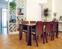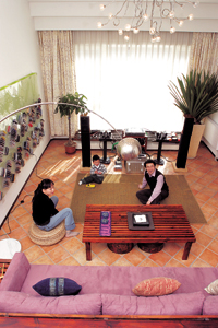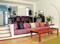 地下室为视听娱乐间。 简洁的背景:让风格在眼前跃动有主 ![]() 餐厅与厨房的 隔断 孔子有言“绘事后素”。主人选择了舒适大方的简洁背景主题,来突出匠心独具的细部设计。 墙与顶是大面积的留白。而地面,一层为意大利瓷砖,这种砖欧洲人喜欢用在别墅中,TownHouse在某种程度上与之相似。瓷砖从入口一直铺设到楼梯间与客人卧房,面积很大,为了解决单调问题,设计了两种尺寸的瓷砖为主要单元,用少量的其他尺寸的瓷砖来分割不同的功能空间。同时,地面与楼梯踏步采用不同尺寸的砖,踏步的砖小而显得精致,另外其整体上采取斜铺方式,使得地面又统一而又丰富(图2)。二层是木地面,木地面使卧室感觉温暖亲切,地下室也是木地面,只是与楼上颜色不同,为白色,解决了地下室光线不足问题,同时地下室是看背投电影的地方,木地面也起到吸收声音的作用。 细部设计 实用也艺术 ![]() 楼梯间的屏风 客厅与餐厅厨房南北相连。女主人喜欢烹饪,为了下厨时也能与家人沟通,但又不致于浪费这个地方,主人在分隔的地方设计了一处能摆放酒与其他物品的白色架子。这个架子同时保证了南北穿堂风的通行,视线的穿透使得房间更加宽敞明亮(图3)。 ![]() 主卧的开放式卫生间 打开大门,经过玄关后就直接看到通往地下室的楼梯。这可不是曲径通幽,想一想主人工作一天后回家打开门的感觉吧,一个古典的屏风就可以解决这个问题。屏风是竖直 线条 形式,折线排列,古仪出新意,很有风格。半推开的屏风隐隐有一种即将全部拉伸的张力,事实上,它并不可拉,反而是其中穿插的每根木条可以根据屏风的疏密进行穿插和抽拉。楼梯间拦板没有采用栏杆而是水泥填实外刷白,扶手用宽扁木料外上混油漆,白底子也反衬着前面的屏风(图4)。 屏风成本:600元左右 ![]() 这是二楼最重要的地方,原来一进门便是卫生间的墙,而主人又定做了一个尺度偏大的床,这样主卧空间显得很小。于是主人决定将卫生间的墙全部拆除,做了一个开放的卫浴空间。这样整个卧室空间就非常流通宽敞,入口处设计一幅紫色纱帘,很有情趣。由于开放的原因,卫浴购买了形式与品质都不错的德国产品,造型就是一种装饰。 墙面的CD架 其实这个CD架也是客厅的主要装饰。用木板与有机玻璃搭配,后面设计了灯光,在夜晚非常漂亮,而CD的插放也自然形成了图案。 CD架成本:400元左右