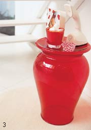 草莓造型的小凳子,色泽亮丽,娇艳欲滴。上面摆放的小用品与整个色调非常协调,让人想到草莓牛奶。这种略带甜味的红白组合给人明快温馨的感觉,看到它们心情就会开朗起来。