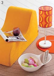 3 这个精致的 沙发 椅具有优美的曲线,同时也很符合人体学原理,与 台灯 也很相配。不同黄色的组合和各种曲线的构造给人柔美舒适之感。