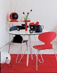 由红色水杯衬托出的这组具有日本“和式”风格的茶具格外引人注目,集中体现了“和式”韵味。中间的黑白圆点让茶具也有了快乐的表情,怎能让人不动心呢? 人们普遍认为柠檬黄是最醒目的颜色,与它同属一个色系的橘色、橙色等鲜艳明亮的颜色也是今年的流行。黄色给人最直观的感觉是温暖,因此如果你的房间朝北或者你喜欢温暖的感觉,不妨尝试选用一些黄色的家具和饰物。有测试表明:在同样温度的房间,因为有大面积的黄色,人的感觉温度比实际温度要高4度,所以不要忽视黄色的作用哦。
