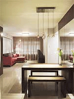 清新中散发个人品味,简单中不失时代感。 现代家居的装潢,讲求美观之余,也重视容易打理,尤其是新组织家庭的年轻夫妇,工作忙碌,下了班,当然不希望成为房子的“奴隶”,忙于打理房子。 这间房子的男女主人,在为这间坐落在榜鹅的新五房式组屋进行装修时,就希望能营造一个清新、舒适的家居环境。容易打理是他们的主要考量因素之一。 一踏进房子,整个大厅采用开放式的设计,家具不多,也没有多余的摆设架子,整个空间看起来宽敞。 特别的是,大厅主要装饰墙壁,不是在客厅或者饭厅,而是从玄关处的一端,一直延续到客厅的入口处。 这道装饰墙,采用木质材料,从地板一直到天花板,覆盖整道墙壁,把访客的视线从玄关处,牵引到客厅,拉长视觉效果,加强大厅的层次感。