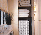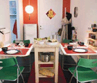再加上一个可以遮百丑的漂亮布帘子,你的小小空间就不会因为各种餐具杂物的存在而令你尴尬了。你还可以把布帘用做临时性的房间分隔墙,或者用来给自己的小卧室划分出一个灵巧的小更衣间,甚至你还可以把自己凌乱的办公桌和成堆的CD从朋友们的视线中隔离开,让男友总能被你客厅的整洁和体面而赞叹不已。而且这个关于理家的秘密只有你自己知道。嘻嘻。