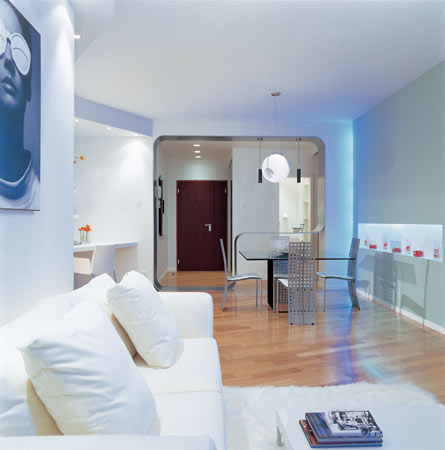 这是一个崇尚设计风格的实用主义者的家。他务实、具体而又有着强烈个性;他喜欢纯粹和高雅;他对生活的风格十分挑剔,一切都要经过精心的布置;他甚至对服装、饰物的选择也一丝不苟。于是,他将他那套面积仅为80平方米的小户型住宅创造成为一个“简单而高贵”的家。 亮点一:门厅虽然不大,但是在设计上实现了门厅的独立性,并最大程度的利用空间分割出:酒吧、门厅柜、洗衣间等具体功能区域。此处的镜子是“实体”,空间借此扩大,同时兼备极强的装饰组合功能。 亮点二:巧妙的将厨房入口设计成45度,增加了空间的采光面以及客厅、餐厅、小书房的空间感。所用材料如金属、 板材 、玻璃、毛,产生了质感的对比;白色、黑色、绿色又进行了色彩对比。房主人就是要用这些元素来体现成熟人士的时尚感、优越感。 亮点三:餐厅由带有彩色桌脚的方形玻璃餐桌、金属椅子组成。所有外在的 线条 和形状都体现轻松的感觉。 对卧室的装饰是通过各种几何 线条 的家具来实现,不过,所有 线条 最终被归为两类:水平和垂直。各种物品和各种形式都再现“简约含蓄”。 |