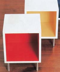 家具除了使用功能,更多的也扮演了装饰的角色。床是韩式风格的,可以根据需要组合成不同的形状。而且自身带有抽屉柜,还照顾了收纳的需要。两个小方凳里面被掏空,分别涂上大红和大黄,外表统一成白色,摆放在室内,更像个艺术品。而窗边的收纳柜则成了装饰品的展台,几个瓷罐放在上边,再加上背景灯,给夜晚窗外景物的导入增添了光彩。 |