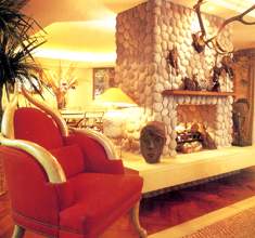这是一所香港别墅的客厅造型,进入眼帘的全是来自非洲的大自然素材。非洲面具、鹿角、仿象牙扶手的座椅,连 台灯 座也用上了卵石凿成 ……让人寻味的是:壁炉在这里被设计在室中央。大胆的构思,无限的创意,提示着设计师们要重新考虑:自然风格,该怎样定位才更好?