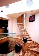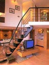 这样的楼梯已属少有,而扶手的设计则可说是绝无仅有了。小的空间摆布本身就足以让设计师们头疼了,又要搞出平台、踏步,设计难度可想而知。本案楼梯扶手的“随意”一笔,抑或是设计师经过多少次“头疼”后的绝妙佳作呢。