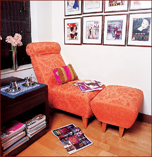 闲适时可以躺在美人榻上随意翻翻杂志。