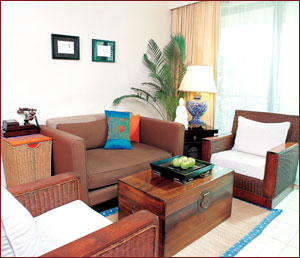 简单舒适的藤编 沙发 与粗重的仿古木箱,构成了客厅的主旋律。