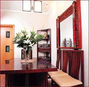 主人深谙家居饰品的点睛之妙,为打破中式设计的老成,家里异域情调的工艺品特别多,将神秘的东方情调渲染得绚烂多姿:比如浴室里的威尼斯玻璃糖果,古色古香的泰国大象,还有诡异的四面佛和玉面观音……其中有些是朋友送的,大多数是旅游时淘回来的,都是爱不释手的宝贝儿。