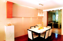 家居装饰中,设计人员利用居室的色调来表达客户的需求,这是一种现实的表现手法。本案例为简约设计风格的代表作,主人的生活诉求在居室风格中得以充分展现。 设计师利用墙面的简单处理,通过基本的镶嵌手段使客厅与餐厅在视觉上达到功能分区的效果,通过墙面 射灯 及顶面灯光槽的反射,使二者达到统一,整个环境舒适清新。餐厅与厨房间通过推拉式玻璃门巧妙地使二者既有独立的风格,又可形成开放式的布局,体现出功能与实用性的完美结合。