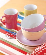 彩色餐具 各种彩色的套装餐具,适合点缀单调的餐桌,也能很好地演绎出华美的厨房风格。