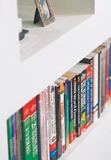 5 根据物件大小和形状 形成适当的收纳空间 如果有大量的CD和书籍、录像带等物品,最好事先根据这些物品的具体形状和数量,来制定适当的空间规模。定做尺寸相当的搁板或收纳柜,可以避免空间的浪费。而且,整理起来有条不紊,视觉上也整洁许多。