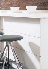 6 带有抽屉的餐桌 用来整理厨房用品 使用带有抽屉的餐桌,可以充分弥补厨房里不足的收纳空间。可以放置一些不经常使用的家电制品或碗碟。只是在制作这种餐桌时,为了不影响用餐时的舒适度,一定要把桌面做得比下面的抽屉宽出来,方便把腿放进去。 |