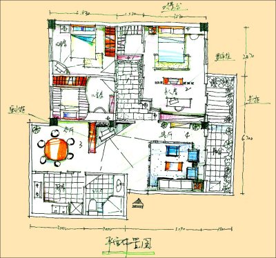 设计要求 1、希望扩大主人房面积,并使主人房可以有一个衣帽间,留一个父母房、一个儿童房,另一个稍小的房间做书房。 2、将厨房面积扩大,改建成开放式或半开放式。 3、扩大卫生间,最好设置专门淋浴间或浴缸。 4、喜清雅,希望引入民居、民宅元素。