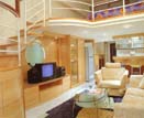 这二个案子皆是夹层小套房的格局,不过二位单身女郎却有著不同的喜好,一个喜欢明快大方的居住空闲,另一个则偏爱幽静隐蔽的居家风格,两种并不相同的风情同时用夹层小套房来设计,该有著怎样不同的设计概念与手法?首先在夹层的表现上即有极大的不同;采开收式的夹层,设计以圆弧型的楼梯一路延伸上楼,视觉马上连接主卧房,步调明快,整个空间感通透而明亮,恰恰与女主人大方的性格相符合。而第二个案子则在夹层部分以圆弧型喷砂玻璃隔开,整个二楼的空间隐密而不受打扰,亦充分符合业主的要求。 翊舵设计师提到,设计的第一个元素一定是先考虑屋主的需求,再来决定空间的特色,而决定夹层特色的重点则是在于楼梯的位置与造型,一来确定空间感,二来更是整个视觉的中心,而此两个案皆以圆弧为设计主轴,除了扶手作造型外,动线也以画圆的形式产生律动的美感,且都在楼梯下方做机能性的设计,一个设计为电视柜的摆置点,另一个则做了储藏室设计,丝毫不浪费畸零空间的使用。