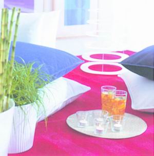 餐桌装饰织物的首要品质是耐磨、抗皱和阻燃(特别在公共场所)。质料为棉与合纤维的混纺织物、纯麻和麻混纺织物的桌布比较受偏爱。采用提花丝绸、麻和粘胶织物制成的餐桌布则尽显上流社会品位。如今的上餐桌饰品已远远超出了实用价值的范畴。碎布拼接的桌布便是使整个室内设计环境更具观赏价值的最好体现。