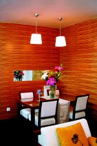 ![]() 餐厅保持开放性状态,以背景墙装饰块进行自然划分,客厅餐厅的空间比例为经典的“黄金分割”比例,又能互相借景,丰富空间渗透感。 ![]() 主卧面宽及面积均比较理想,主体装修设计不宜过多,经过精心陈设配饰即可达到精彩效果。 ![]() 阳台为落地窗,视野开阔,采光充分,摆一棋局,休闲意浓。 ![]() 客厅27平方米,面宽4.2米,大小适宜。客厅家具造型简洁,突出整齐,干净,简约无瑕,配置“以人为本”,以此来展示内中人的气质,突出主题。 此套设计为位于东四环窑洼湖桥畔的世纪东方城A户型样板间,建筑面积为133平方米。 客户定位 A户型为本样板间工程重点户型,客户群主流为CBD区大中型企业的中高层管理人员及小企业主。 风格定位 自然主义。温馨、舒适、自由、随意、大气。 装修以块面为主, 线条 为辅,视野开阔;选材上以木质、棉麻为主、温馨自然;色彩柔和,雅致,结构简洁。 材料说明 整体 木材 选定斑马纹木纹饰面板,纹理细致,质感细腻,避免雷同现下流行的榉木、柚木、胡桃……各功能空间墙面以壁纸为主,壁纸柔软舒适,环保,易于施工,效果感觉非涂料饰面可比;客厅/餐厅墙面材质有所区分,整体感觉统一大气,有助于视觉上统一空间,延展视线;书房墙面为壁纸,主体突出,层次分明;儿童房墙面为壁纸,整体配饰设计独特,视觉新颖;主卧床头斑马纹木护墙板,豪华庄重。整体空间地面材质全部为红檀 实木地板 ,整体统一,温馨舒适。 品牌说明 中成卓英设计、依力诺依家具、嘉俊陶瓷、TOTO洁具、中海橱柜、中海整体套装木门。 |