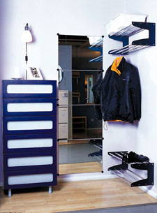 这个玄关的面积比较大,除了鞋柜,还可以在对门摆上一个三斗矮柜,墙上的时钟时时提醒主人准时上路。 |