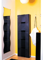 “进门脱鞋”,这已经成为当今城市生活的一种模式。鞋柜能将杂乱的鞋子有次序地排列,化零整为整齐,一举两得。因此鞋柜便成为玄关上必有或仅有的主角。 有些鞋柜靠墙设置,在考虑它的实用性的同时,利用装饰 线条 ,灯光效果等来体现艺术效果。有些鞋柜常常与玻璃隔墙结合在一起,半截透明或半透明的艺术玻璃 隔断 ,让稳重与明快对话,让玻璃阻隔直接透视室内的目光,既体现“家”的私密性,又不失大方感。