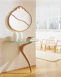 简洁的设计原来也可以如此美丽,造型新颖的镜面设计使你在整理妆容时拥有一份好心境。一面可大可小的镜子可供整理妆容。如果放几本书,丈夫等待出门前作最后准备的妻子时,就可以顺手翻翻,消磨那段说不好是长是短的时间。而几枝花草、几件新颖活泼的小摆设,使得整个空间转瞬间灵动起来。