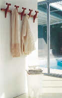 只悬挂一排衣帽钩恐怕是最简单的玄关布置了,加一张小凳子便可坐下休息,化解了出门的紧张与匆忙。一个别致的衣帽架、一方小小的搁板、一个轻轻巧巧的柜子,进门需要卸下、出门又需披挂上的一身装备,便一一有了栖身之地,零散和杂乱被妥善归置为井然有序。