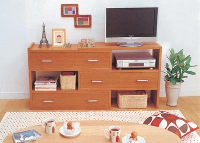 兼做电视柜和起居室收纳柜 ![]() 较矮的3层伸缩橱柜,我们建议也可以作为起居室的电视柜使用。由于橱柜的宽度可以任意通过拉伸来改变,便可结合电视机和音响组合的尺寸来调整。配有3个抽屉,同时也可以确保录像带等的收纳空间。因为橱柜上有开放的空间,还能放书报和杂志,实在很实用。 ![]() 伸开和收缩后感觉截然不同。 ![]() |