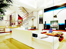 设计语言:您看到的这个空间有多美。设计师认为:“充分发挥了现代感的表现。”其中包括结合应做之处所采用不同材质的运用,简洁的造型处理,视听墙侧的龛墙。二级踏步的酒具器皿构架,楼梯根基的毛石装饰以及配饰的不同造型的灯具,完成了一件统一、连贯的作品。客户的感受:“满意在先,表现充分,功能配饰合理,我所想要的设计人员均给予了充分的现实展现。”