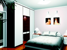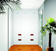 门厅:家居装饰所提倡的简约风格,对设计提出了更高的要求。本案设计上,设计师采用借物装饰手法,通过对门厅两侧门颜色、材质、款式的选择,使其在保持统一风格的基础上,又富有变化和新意。三层壁柜设计避免了门厅过长的问题,又增加了储物空间。
