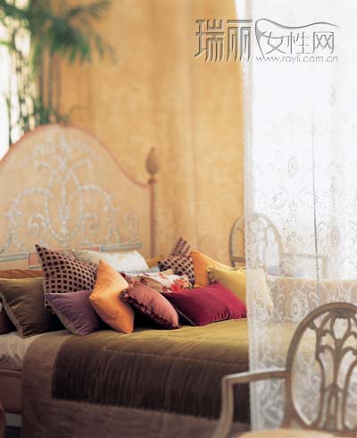 最能影响卧室整体氛围的就是床幔、靠垫等各种布艺制品。天鹅绒、丝绸以及锦缎都属于传统的 布料 ,然而如果采用具有现代感的制作手法,例如镶边、拼接等,将它们制成各种卧室用品,看上去既有新鲜感,又和谐,从而获得不易觉察的混搭装饰效果。 |