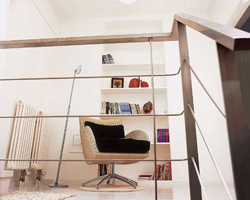 案例2 这个“书房”位于二楼的楼梯上部。主人利用这个空间,为自己同样打造出很舒适的阅读、休息空间。 |