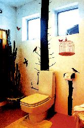 卫生间太小了,放几盆花的愿望是满足不了的,索性在墙上挥笔成画,大树、小草,绝不受空间限制。 |