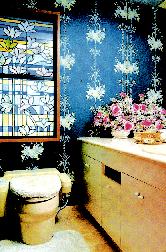 这个卫生间看上去成熟、典雅,这种印象来自于材质高档的洁具、纯白的 大理石 台面、蓝底白花的墙纸和荷花图形的贴窗纸。