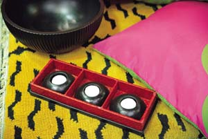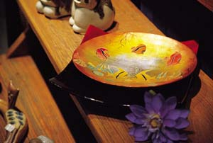 曾经在长沙马王堆欣赏过中国的漆器艺术品,它们有着深邃的中国古代文化底蕴,精湛的工艺水平更是令人叹为观止。蓝莲花店里的漆器品则是以家居实用性见长。比如,那套漆器果盘,丝般柔滑的盘面散发出幽蓝色的光泽,雅致又很时尚,不经意中透射出主人的用心良多,价格也远比想像中的低。光鲜靓丽的红色餐巾扣,圆润饱满的曲线勾画出简约玲珑的外形,只要付出一点点,换来的就是晚餐上的优雅和情趣。