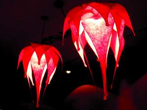 别致的木刻三角镜与剪纸在一起,别有民俗风味。 东风西渐,伴随着“中国风”在国际上的日益受宠,传统古典的“唐装”家饰又重新回归流行的大舞台。有着喜庆红色的、浓厚民族风格和明清古典风格的家居饰品就像一阵风,突然牵动了许多人的视线。 冬天屋外白茫茫的雪景总让人感觉寒冷,红色可以激发潜藏在人们心中的热情。许多设计师都明白古典和古老实在大不相同,在他们的设计中,保持家饰古典韵味的同时又添加了许多现代元素。 面对身着红色“唐装”的家居饰品,许多人是越看越喜欢,越看越爱不释手。设计师们让家饰衍生出了许多种不同的红,以此体贴入微地迎合主人的个性风格。这些不尽相同的红色和不同类别的家居饰品经过重新搭配,又有了新的风格和别样情调。这些张扬的“红色分子”正肆无忌惮地展现自己的长处,不断地勾起你的占有欲。 灯饰 远近高低“红”不同