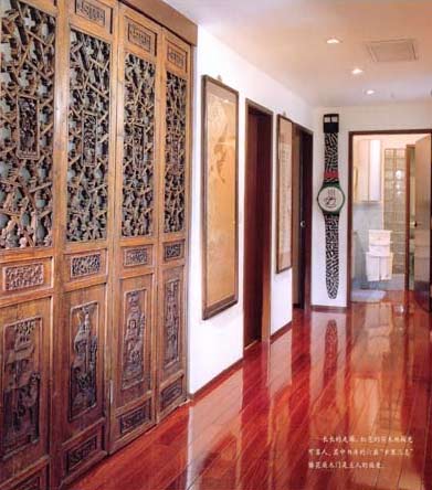 然而厨房里洁白、直 线条 的台面以及遥感的灶灯、可升降的不锈钢 抽油烟机 又极富现代感。于是,这一中一西、一疏一密竟成了一种别具风格的和谐。 书房外的六扇“岁寒三友”镂花柴木门,是英达和梁欢跑道通县的东店旧家具市场买来的古董。占了如此显眼的位置,可见主人对它的偏爱。把门打开,迎面是一个墙面墙的书架。两侧壁上是各式各样的Swatch表,梁欢自承当年是标准的SwatchFan,不过现在“老了”,不玩儿了。另有一镜框里,整齐地摆着英达早年的各式旧证件,可见主人的怀旧心情以及收藏远见。